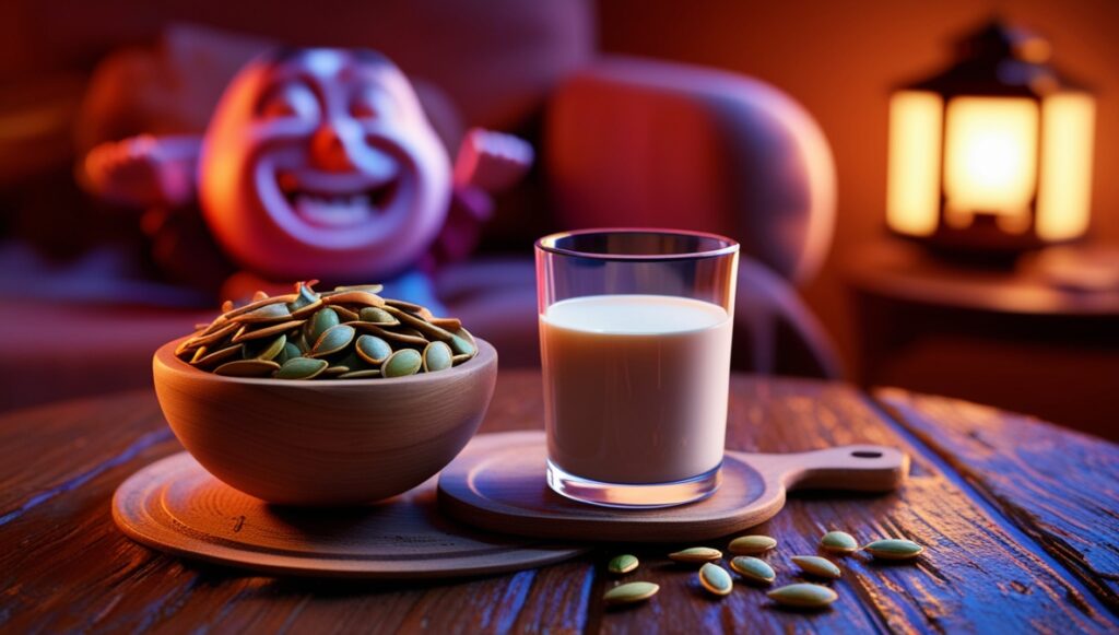 تحتوي بذور اليقطين على مستويات عالية من المغنيسيوم، وهو معدن أساسي يساعد على تهدئة الجهاز العصبي وتنظيم عمل العضلات. كما توفر كمية جيدة من التربتوفان، المادة التي يحولها الجسم إلى السيروتونين ثم إلى الميلاتونين، مما يساهم في نوم أكثر استقرارًا وجودة أعلى. لذلك ينصح خبراء التغذية بتناولها مساءً للحصول على نوم مريح