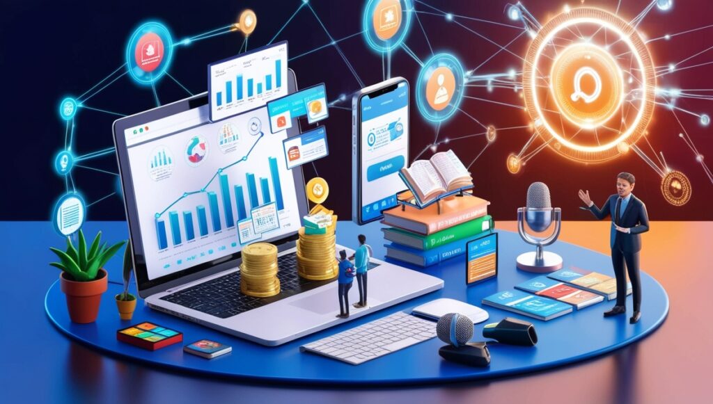 - أمثلة: بيع دورة على منصة Udemy أو كتاب على Amazon Kindle.